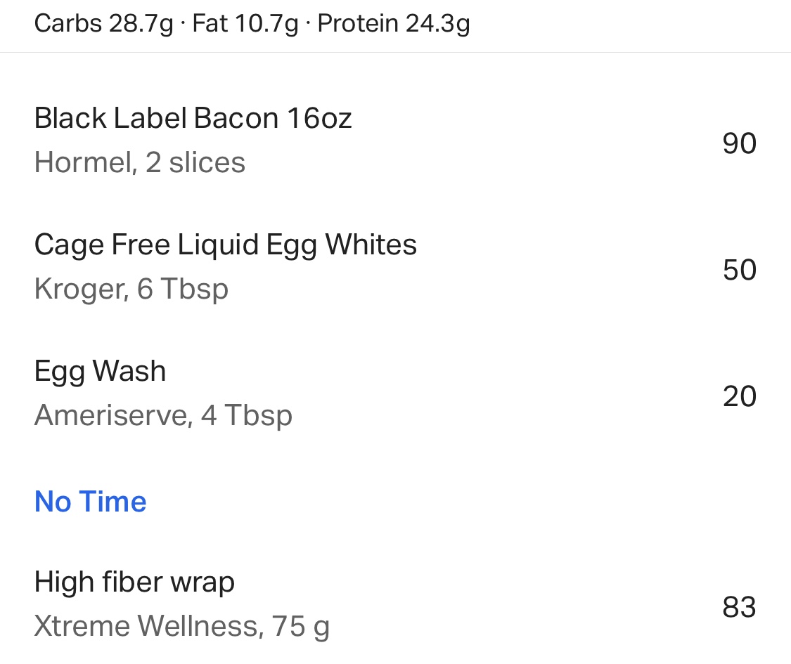 Next up: My mid morning snack. I am making an egg white scramble and throwing it on a low carb wrap. I am loving these new wraps I found at Smith’s Marketplace. They are loaded with fiber, which is something I have been lacking in my diet lately. I prep all the ingredients and make it fresh each day.
